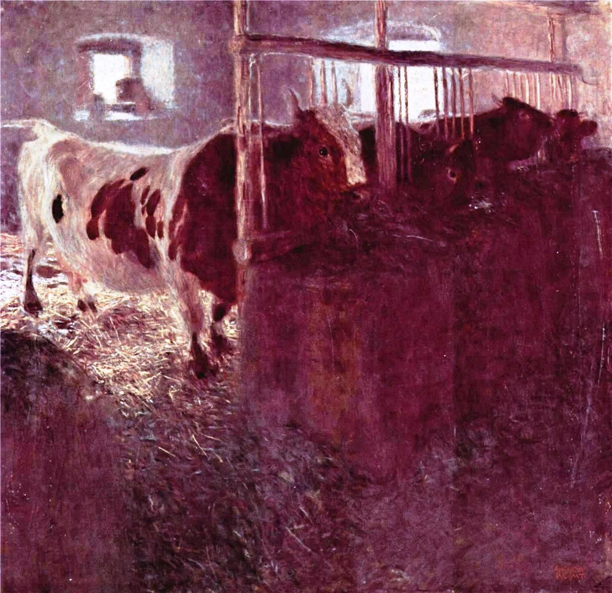 Your oil painting reproduction of "Cows in the Barn" by Gustav Klimt will be handmade to replicate all the brushstroke details, colors, and shading of the original work of art. Please be assured that you will receive a magnificent oil painting.